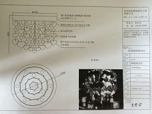 孫氏照明專業(yè)燈具定制,多年的非標燈具定制經(jīng)驗服務(wù)客戶更是得心應(yīng)手。云南網(wǎng)咖的訂單,從最初的燈具設(shè)計方案一步步深化,改了又改,到最后確定方案。其中恰逢五一小長假,工期緊任務(wù)急,孫氏照明的小伙伴們放棄了與家人團聚的日子,加班加點趕工期。急客戶所急,想客戶所想。一張張看似不起眼的圖紙凝聚了多少心思!感動孫氏照明有這樣一群兢兢業(yè)業(yè)的小伙伴們。