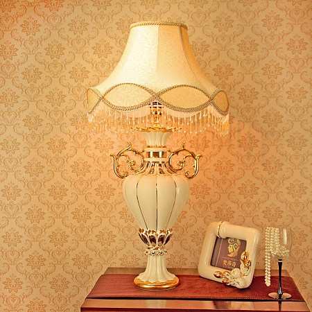 產品標題:歐式風格臺燈 型 號: STD8814 光源數量:1*40W 主要材質:鐵質 布藝 使用場所:書房、臥室 適用光源:普通燈泡,led燈泡 定制熱線:0512-66671927